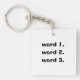 Diseñar su propia cadena de claves con texto editable. Cuenta tu historia de vida de afirmaciones positivas, citas, motivación, tres palabras inspiradoras. Inserta sus propias palabras / texto en los puntos de la izquierda. Puede ir más lejos y personalizar tipos de letra, colores y tamaños pulsando el botón IT PERSONALIZAR. Juega con otros tipos de letra y colores, sube tus propias imágenes, sé creativo y diseña tu accesorio más amable. Puede ser algo único para ti o un lindo regalo meditado para alguien más.