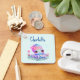 Un llavero con la imagen de un lindo pulpo de niñas con una flor en la cabeza. Grandes ojos brillantes y una cara agradable.