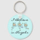 Tres ángeles de figuras de palos y texto negro que dice "Creo en los ángeles" en un fondo azul en una cadena de teclas de ángel ¡seguro que deleitará a cualquiera que ame ángeles y pegará figuras!
