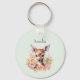 Keychain con un hermoso ilustracion con un bonito ciervo. Rodeado de rosas y flores.
