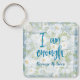 Cadenas clave de regalo cristianas: Soy suficiente porque vive cadenas clave con un patrón de margarita retro angustiado/fondo amarillo. Tienda de regalos de citas cristianas Vikkelynn Designs & Co.