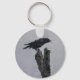 Este cuervo estaba encaramado en lo alto de un árbol muerto en un día muy ventoso.
