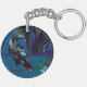 Llavero Crow Design Acrylon Keychain Round Purple Blue