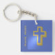Llavero Cruz religiosa cristiana Gold personalizada Azul