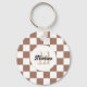 Llavero Cuadrados de cheques mocha retro blanco marrón Mon