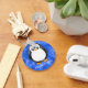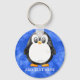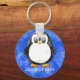 Un lindo dibujo de pingüino blanco y negro. Cadenas de claves para animales bebés. Fondo de color azul. Editar texto al personalizar. Una idea de regalo para los niños.