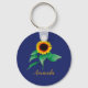 This is a cheerful custom watercolor sunflower keychain with navy blue background. You can easily change the name spelling, font color, style and size with the Zazzle personalize button or remove the text altogether.