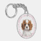 This pastel pink keychain features your dog's photo on one side and a festive pastel pink cavalier King Charles Spaniel silhouette design with the phrase 'I love my cavalier.' and dog’s name on the other. Personalize with your name and cute photo to create a unique pastel-colored keychain that makes a thoughtful present for friends, family, coworkers, or any pet lover. Great for everyday use, birthdays, or as a pastel accent at home. Perfect pastel gift for cavalier lovers – customize with your name and photo today!