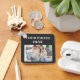 This custom keychain is the perfect way to keep your most cherished memories with you at all times. The product features a square shape with rounded corners and a matte dark gray base that highlights the central image. Above the photo area, the white text "YOUR PHOTO HERE" is displayed, indicating the option for full personalization. The sample image shows a family portrait, making it a touching gift idea for parents or grandparents. It is equipped with a sturdy metal ring connected via a flexible transparent plastic tab, ensuring durability and practicality for daily use with keys or bags.