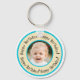 Llavero Custom Round Birthday Photo Beige & Turquoise