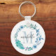 Your monogram alphabet letters circled by a beautiful wreath comprising blue flowers, leaves and foliage.