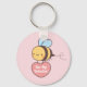 Un llavero con una linda y pequeña abeja voladora se aferra a un corazón con las palabras de juego de palabras "¡Adquiera mi San Valentín!" ¡Perfecto para el El día de San Valentín de su tristeza!