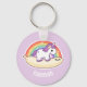 Un bebé unicornio púrpura súper lindo montando un banano feliz bajo un arcoiris brillante. Personaliza con tu nombre.