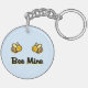 La cadena de claves muestra dos abejas voladoras, lindas, sonrientes sobre las palabras "Mina de abejas" en un texto retro, con sombra de desvío. El fondo es azul claro. Una manera dulce, graciosa y adorable de expresarse, ya sea en El día de San Valentín o en cualquier época del año. Un gran regalo para alguien especial, que te recordará cuando lleve esta cadena de llaves con ellos. Un regalo práctico.