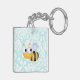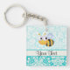 Llavero Cute Bee; Patrón de Damasco Verde azulado