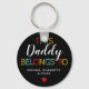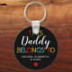 Colorida cadena de claves del día del padre con el texto "a este papá le pertenece", con los nombres de los niños, y un lindo corazón rojo.