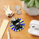 Personalizado ninja de cachorro kawaii sobre fondo amarillo brillante y azul de quemadura solar