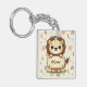 Esta adorable llavero personalizada cuenta con un león pequeño y caprichoso que sostiene un letrero con el nombre de tu pequeño.