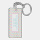 This retro inspired keychain features a daisy pattern in bright shades of yellow, pink, blue and lime green. Personalize the front with your choice of name and back with special text.