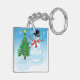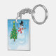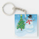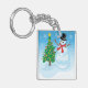 Un muñeco de nieve con copos de nieve y un árbol de Navidad adornado es tan festivo para las vacaciones.