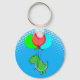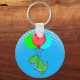 Un lindo personalizado estilo bebé t-rex volando en el cielo azul con globos. Cadenas de llave de personalizado para animales. Idea de regalo para los niños que aman los dinosaurios.