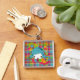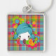 Esta cadena de claves personalizados tiene una corbata real. Esta imagen es una sonrisa que espera que ocurra: una niña adorable con el pelo largo rodeada de un arcoiris de burbujas y flores. Este llavero es una manera dulce y divertida de seguir el rastro de tus llaves. ¡Compra uno por ti mismo y como regalo hoy!