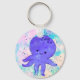 Esta adorable cadena de cachiporras de pulpo al estilo personalizado sería un regalo excelente para niños de todas las edades. Sus colores vivos y su diseño bonito harán sonreír a cualquier niño. Acuarela rosa, blanca y azul en el fondo. La cadena de claves cuenta con un pulpo bebé sonriente, lo que lo convierte en el regalo perfecto.