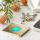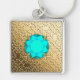 Una joya trompe-l'oeil, 3-d, aguamarina ambientada en un fondo oro metálico, con motivos damascos - arte digital de medios mixtos