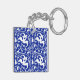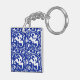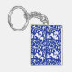 Llavero Damasco floral de Ikat - Azul cobalto y blanco