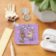 Ratones bailarines en una cadena de llaves metalizado o en un llavero. Utilice "Personalizar esta plantilla" para modificar el texto de "Feliz 12 cumpleaños Rachel x" y crear un regalo de cumpleaños único y personalizado; los cambios de texto se reflejan en ambos lados. Con dos ratones felices en gorras fiestas, bailando como confeti y una cinta caen alrededor de ellos, con globos esparcidos en el suelo, con un fondo floral.