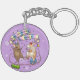 Ratones bailarines en un llavero acrílico. Utilice "Personalizar esta plantilla" para modificar el texto de "Feliz 12 cumpleaños Rachel x" y crear un regalo de cumpleaños único y personalizado; los cambios de texto se reflejan en ambos lados. Con dos ratones felices en gorras fiestas, bailando como confeti y una cinta caen alrededor de ellos, con globos esparcidos en el suelo, con un fondo floral.