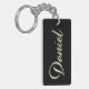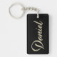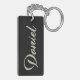 Ein sehr schöner edler personalisierter Schlüsselanhänger im whitegold Lettering Look auf schwarz für Daniel.