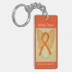 El ángel de la cinta de conciencia en el llavero presenta el arte de una pintura de un ángel de conciencia naranja. El lado del arte dice "Conciencia del Cáncer de Riñón" y el lado reverso dice "¡Espero y apoyo la conciencia para una cura del cáncer de riñón!". ¡Agregue sus propias palabras personalizadas para llaveros de conciencia de arte de ángel personalizados! También puede eliminar el texto para un llavero de ángel de arte solamente. Los llaveros de arte de la cinta del ángel de conciencia naranja se pueden personalizar con mensajes personalizados para hacer grandes llaveros de arte de conciencia para recaudaciones de fondos, regalos de conciencia o otros eventos especiales. Regale este amuleto de llavero de arte de ángel como un regalo de cinta de conciencia para cualquier ocasión.