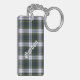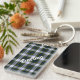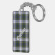 Llavero elegante hecho en el modelo escocés de la tela escocesa de tartán del clan del vestido azul, blanco, y verde de Gordon. El texto blanco intrépido del estilo del Viejo Mundo, en el frente y la parte posterior, está listo para personalizar para sí mismo o como gran idea para un regalo.