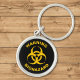 Icono de advertencia amarillo de biopeligro. Color de fondo personalizado. Dos campos de texto personalizados en el círculo.