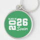 Se muestra un llavero de la clase de graduados en un diseño de color verde y blanco.