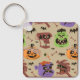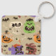 Llavero con patrón vintage de Halloween que incluye calaveras, calabazas y más para agregar a tu colección de llaveros de Halloween.