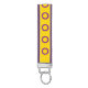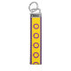 La bandera del orgullo para las personas intersexuales es un anillo morado en un fondo amarillo. Este llavero de muñeca tiene una fila de anillos morados.