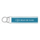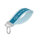 Un elegante llavero de muñeca con temática náutica con tu nombre de barco personalizado, nombre de familia u otro texto deseado. Con un ancla personalizado y un diseño de caballitos de mar en blanco sobre un fondo azul acuático y un adorno azul claro que complementa el azul claro o personalizar fácilmente los colores para que coincidan con la decoración actual. Hace un gran regalo.