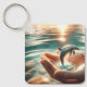 Esta cadena de llaves tiene un delfín retratado en ella.