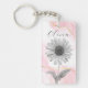 ¡Celebra su madrugada con un aguijón floral que apreciará! Esta elegante cadena personalizado presenta una margarita pintada a mano en blanco y negro sobre un fondo de color rosa y oro ondulado. Perfecto como un regalo para Quinceañeras, dulces 16 fiestas o incluso regalos de damas de novias. Personalízalo con un nombre o palabra significativa para crear un favor verdaderamente especial. Elegante, femenina y llena de corazón.