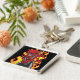 El cráneo del diablo rojo está abrazando su guitarra y rodeado de llamas. ¡A este cráneo le encanta rodar y hace demasiado calor!