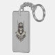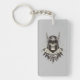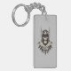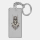Calavera malvada con las manos, cuernos y rosas de esqueleto cruzados.