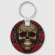 An ornately decorated skull is surrounded by red roses and black foliage on this wonderfully Gothic keychain Perfect stocking stuffer for those who enjoy the darker side.