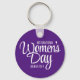 Celebrar el Día Internacional de la Mujer el 8 de marzo con este keychain morado, que presenta este día especial en un elegante guión vertical. Diseño © W.H. Sim. Ver más en zazzle.com/expressionsoccasions