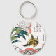Llavero Dibujo japonés vintage, Peonies y Sparrow