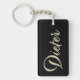 Ein sehr schöner edler personalisierter Schlüsselanhänger im whitegold Lettering Look auf schwarz für Dieter.