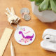 Un bonito imán de dinosaurios personalizado personalizado con dinosaurios prehistóricos del período Jurásico de un Bronotosauro en un color de efecto púrpura purpurinoso y una triceratops en un rosa pálido pero con cuernos purpurinoso morados. Un diseño de bonito dulce para un joven chica. Añada el nombre del niño para hacer un regalo especial adicional para un cumpleaños o cualquier otra ocasión.