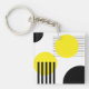 Ilustracion de diseño abstracto con formas geométricas (círculos y rayas) en tonos amarillos y negros sobre fondo blanco.