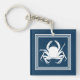 Diseño acuático con decoración de cangrejo en cuadrados a rayas sobre fondo azul